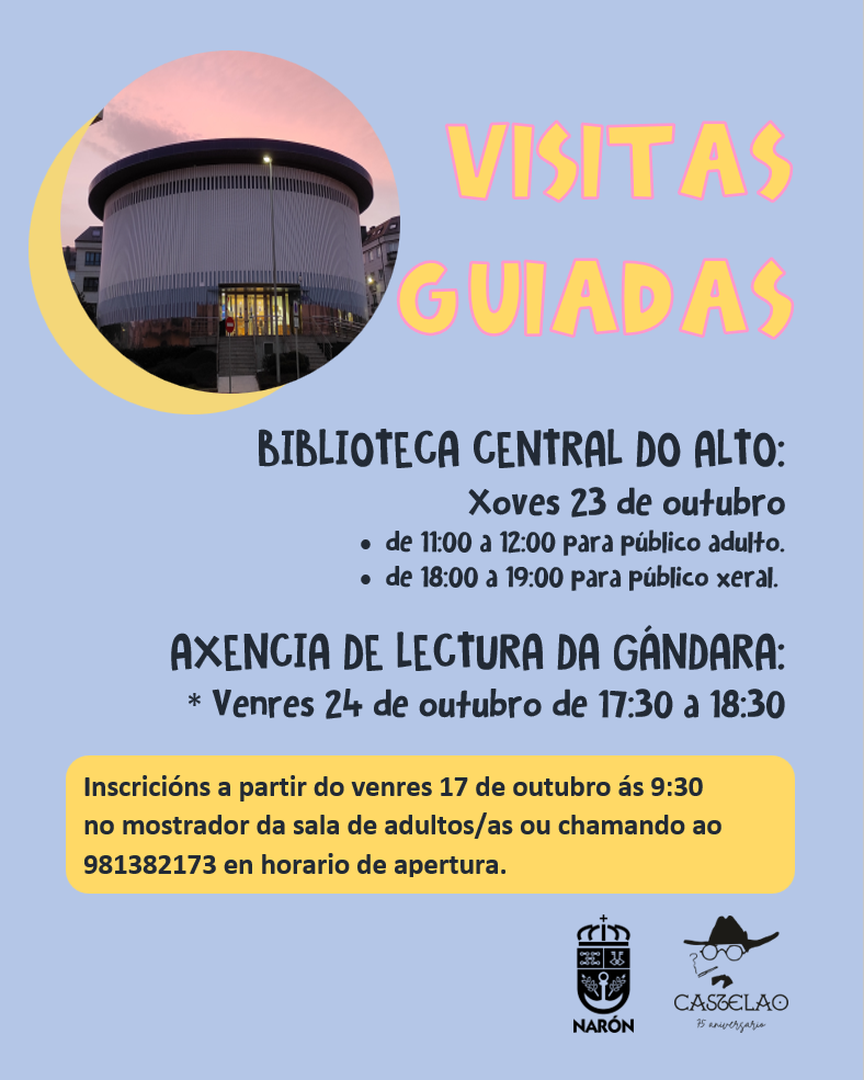 Además, podrás conocer también la Agencia de Lectura de A Gándara en otra visita guiada el viernes 24 de octubre, de 17:30 a 18:30. Será una buena oportunidad para descubrir los servicios que se ofrecen en exclusiva en este espacio.